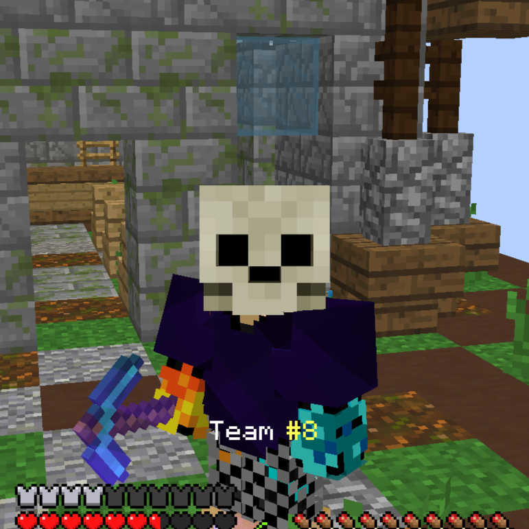 Hi Leute, ich bin Kolja und spiele gerne am Computer. Am liebsten spiele ich Minecraft und hier seht ihr ein Bild von meiner Figur mit einem Skelettschädel.